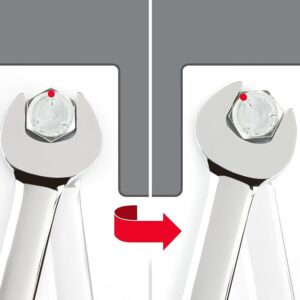 Angled Open End – To reduce the working swing arc in tight spaces, the open end is angled 15 degrees so the wrench can be flipped over with each rotation to engage the fastener twice as often