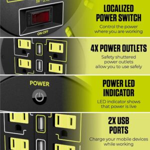 TWO USB CHARGING PORTS: charge mobile devices without losing power outlet space, so you can keep power tools connected