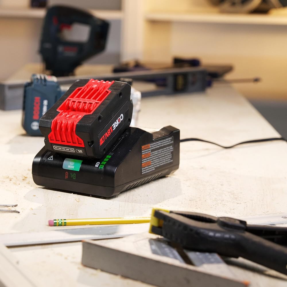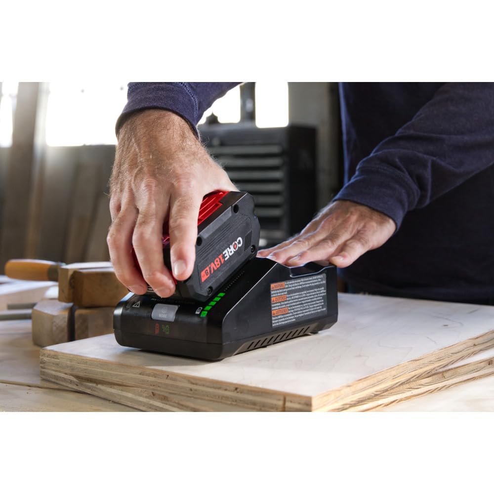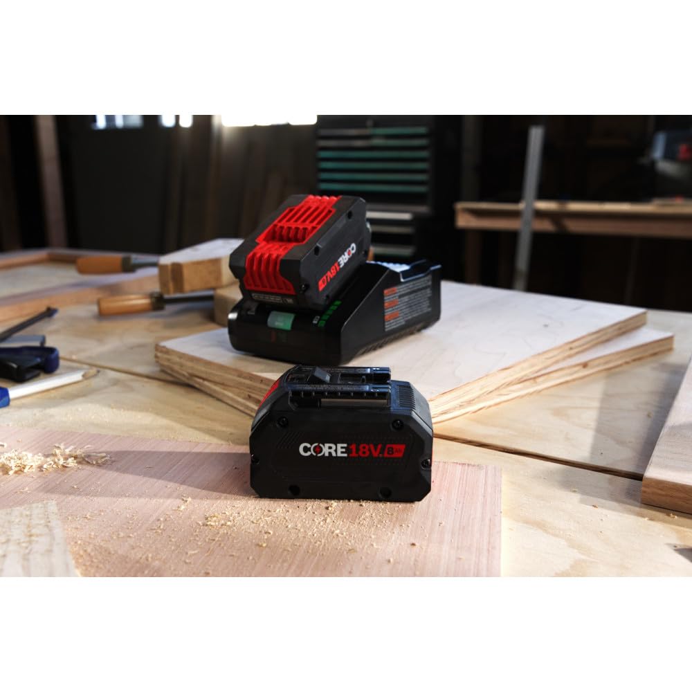 This 18V Starter Kit is the ideal solution to reducing downtime and increasing productivity for users tackling the most demanding and brutal applications. It includes an 8 Ah High Power Battery, which delivers 50% more runtime and over 75% more power than the CORE18V® 4 Ah battery, powering high-demand applications. The GBA18V80 features two layers of enhanced 21700 cells for greater battery efficiency. The battery has Bosch-exclusive CoolPack™ 2.0 Technology, which cools the battery faster and helps provide longer lifetime compared to Bosch 18V batteries without CoolPack™ 2.0. Its cutting-edge battery design offers increased efficiency, and it weighs only 2.14 Lbs. This battery is compatible with Bosch 18V tools and optimized to drive Bosch PROFACTOR™ tools with BITURBO Brushless™ Technology. It’s compatible with Bosch 18V chargers and the AMPShare™ System. The air-cooled Bosch GAL18V-160 can fully charge a spent CORE18V® 8 Ah Lithium-ion battery in about 51 minutes in standard mode. It features an optional Power Boost™ mode, which boosts electrical current charging to 50% in the shortest time with compatible batteries.