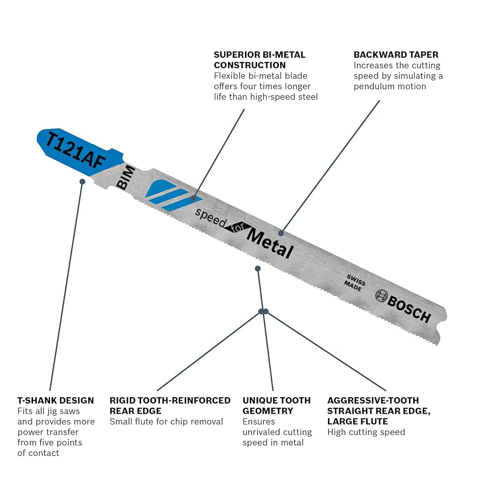 BOSCH T121AF3 3-Piece 3-5/8 in. 21 TPI Speed for Metal T-Shank Jig Saw Blades (Pack of 4)