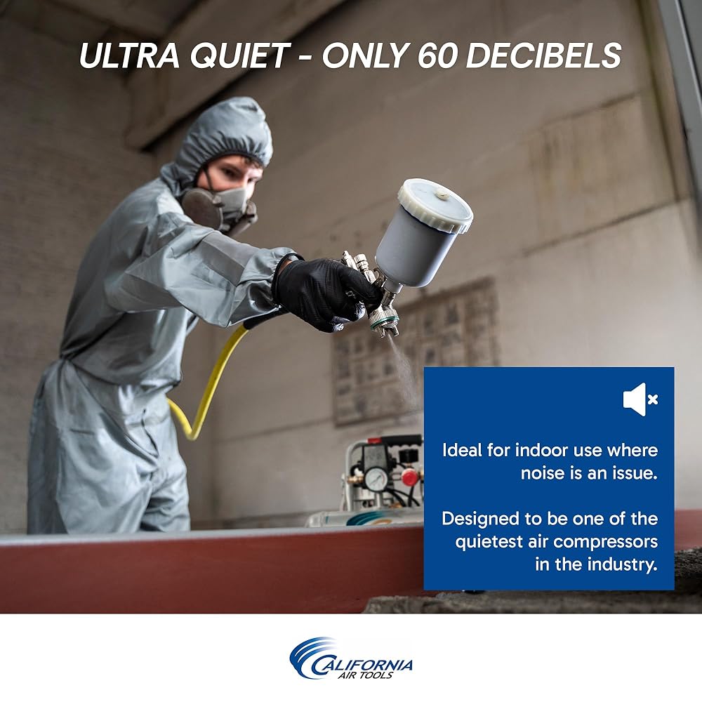 • ULTRA QUIET PERFORMANCE: The California Air Tools Ultra Quiet & Oil-Free Air Compressor operates at only 60 decibels, making it one of the quietest air compressors available and ideal for industrial customers looking for longer lasting compressor performance. Perfect for indoor use and noise-sensitive environments. Airflow 4.00 CFM @ 40 PSI and 3.00 CFM @ 90 PSI.