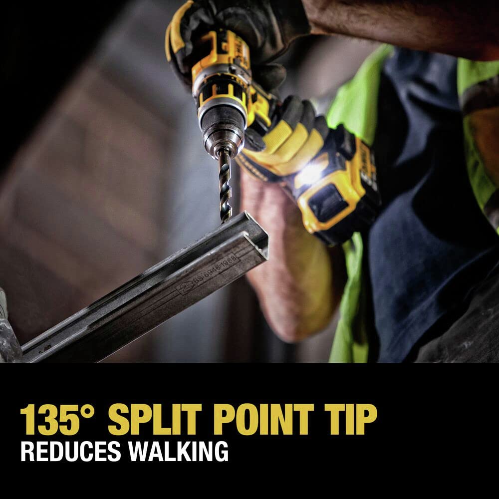 - 135° Split-point tips drill on contact and prevents walking on the hard surface you’re working on