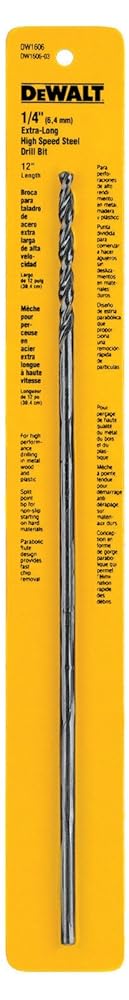 DEWALT DW1606 1/4-inch by 12-inch extra long Black oxide drill bit.