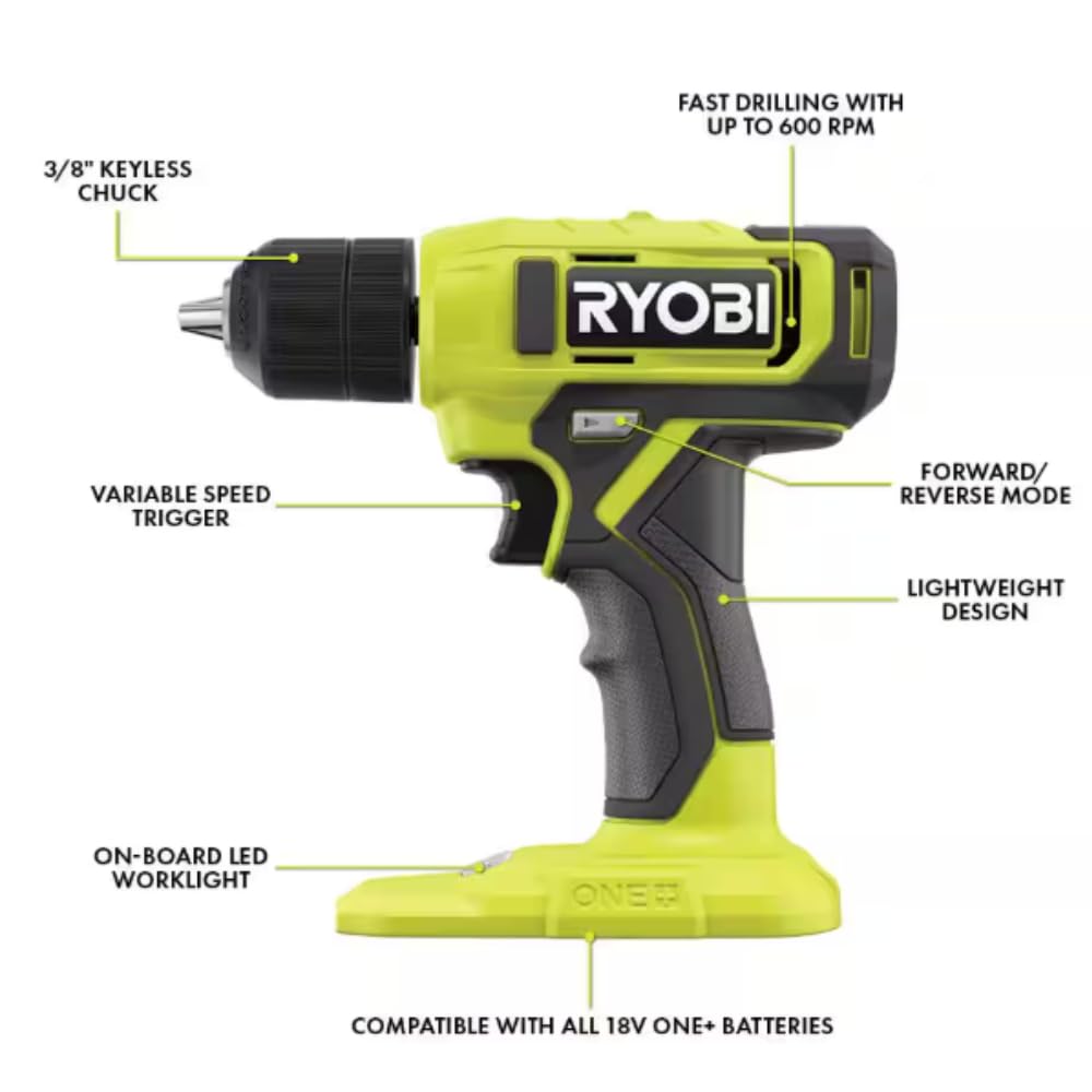 RYOBI 18-Volt Cordless 3/8 in. Drill/Driver Kit with 1.5Ah Battery and Charger. The drill/driver features a 3/8 inch keyless chuck with a 24-position clutch that adjusts torque output to control the depth of the screw or fastener. Its compact design allows you to work in tight spaces. It also has an LED light to illuminate work surfaces and on-board bit storage for convenience. This kit is powered by a 1.5Ah lithium-ion battery that delivers fade free power. Best of all, it’s a part of the RYOBI ONE+ System of over 200 cordless tools that all work with the same battery platform. This kit is backed by the RYOBI 3-Year Manufacturer’s Warranty. This bundle comes with a drill bit set that gives you the bits you need to drill wood, metal, plastic, and even brick. The assortment enables you to tackle a variety of projects. Use the included Buho Tool Bag to stay organized while taking this kit around with you to different job sites with the added convenience of a clear front for quickly identifying what you need. The Buho 16” Tool Bag is perfect for carrying the items or safely storing them.