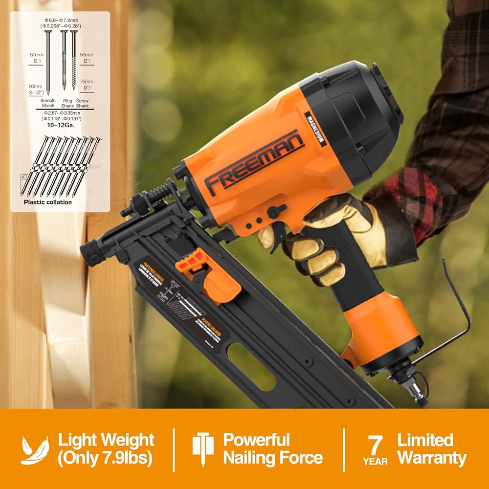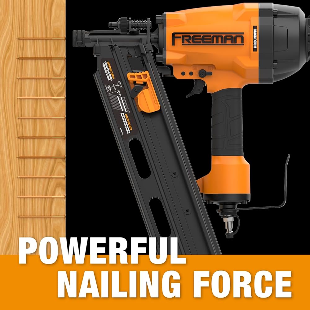 Freeman 2nd Gen 21 Degree Pneumatic Framing Nailer | 2″ – 3-1/2” Nails | Dual Trigger, Anti-Dry-Fire, Depth Adjust, No Mar Tip | 7-Year Warranty | G2FR2190