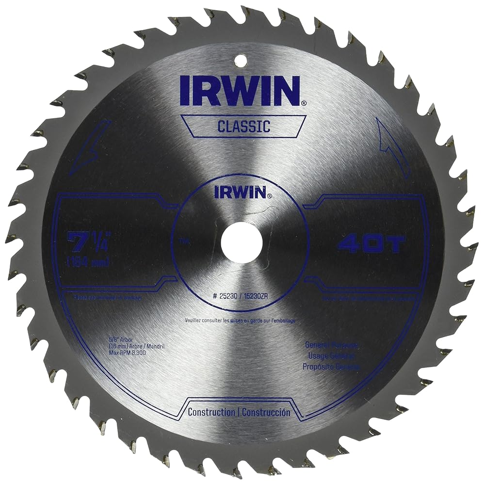 Precision-ground teeth allow for smooth, accurate cuts. Corrosion-resistant coating helps prevent rusting. Classic Series blades offer professional performance at an economic price. 40 tooth count blades are ideally suited for trim and finish jobs. IRWIN Tools Classic Series Steel Corded Circular Saw Blade, 7 1/4-inch, 40T (25230)