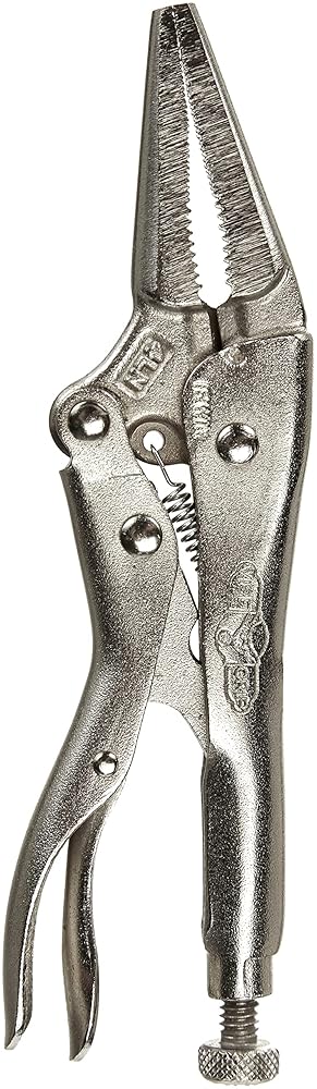 The IRWIN VISE-GRIP Original Long Nose Locking Pliers with Wire Cutter is ideal for precision work with a long, straight nose that provides a secure grip in narrow and hard-to-reach areas. Constructed of high-grade, heat-treated alloy steel for maximum toughness and durability, these pliers tighten, clamp, twist and turn with hardened teeth designed to grip from any angle. Pressure can be adjusted to fit work and stay adjusted for repetitive use. Includes a convenient wire cutter for even more versatility..