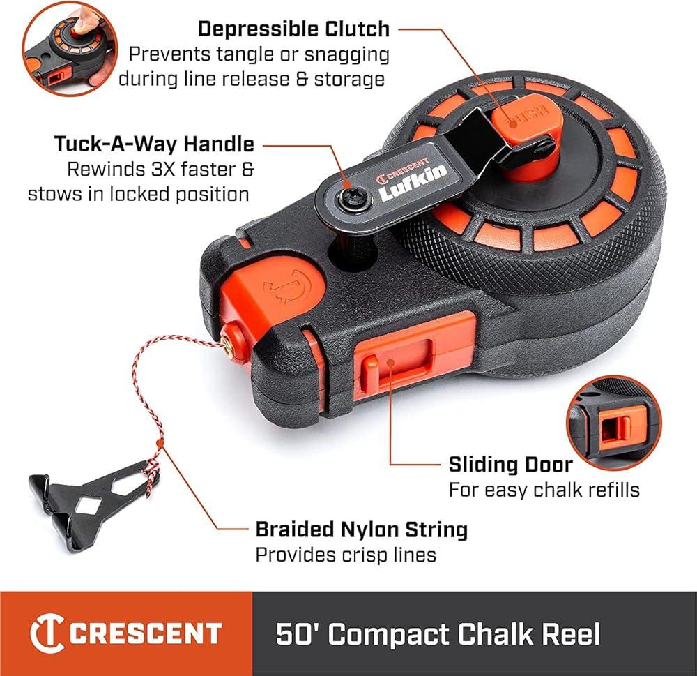 Lufkin Crescent 50′ Compact Chalk Reel with Blue Chalk, CL50 (Pack of 2)