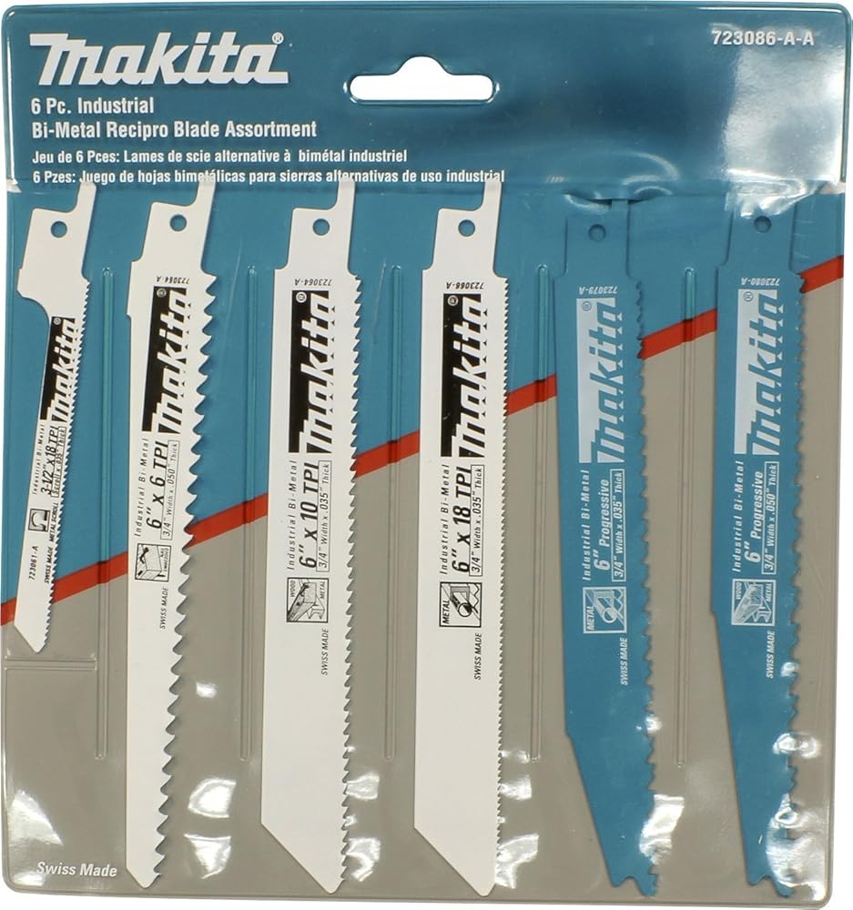 Makita 6 Piece Blade Assortment Pack is designed to provide a solution for most cutting needs. The blades are made from high quality steel for clean cuts and longer life. The blades feature a 3/4 in. width for faster cutting.