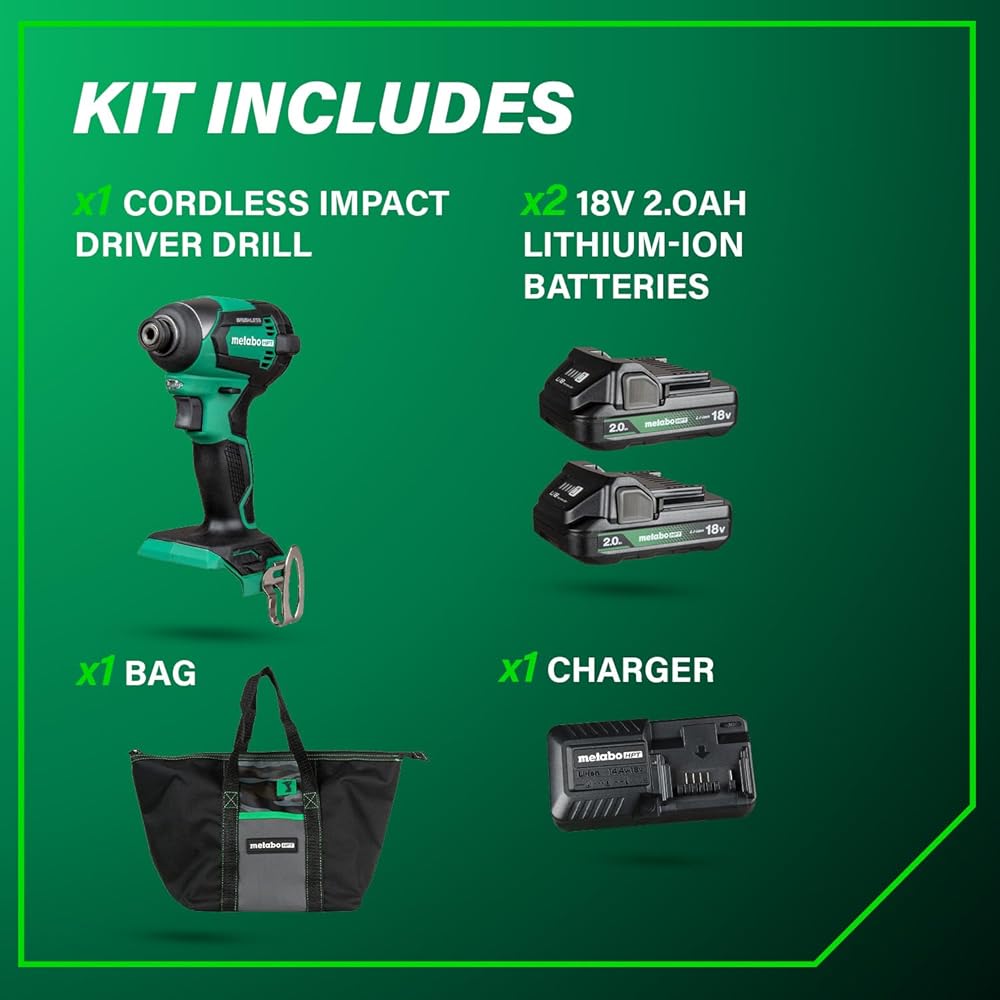 - CHOOSE METABO HPT FOR QUALITY AND RELIABILITY: This Impact Driver Kit is backed by Metabo HPT warranty: lifetime on the tool body, 2 years on the battery and 1 year on the charger. Get more durable power tools at the Metabo HPT store.