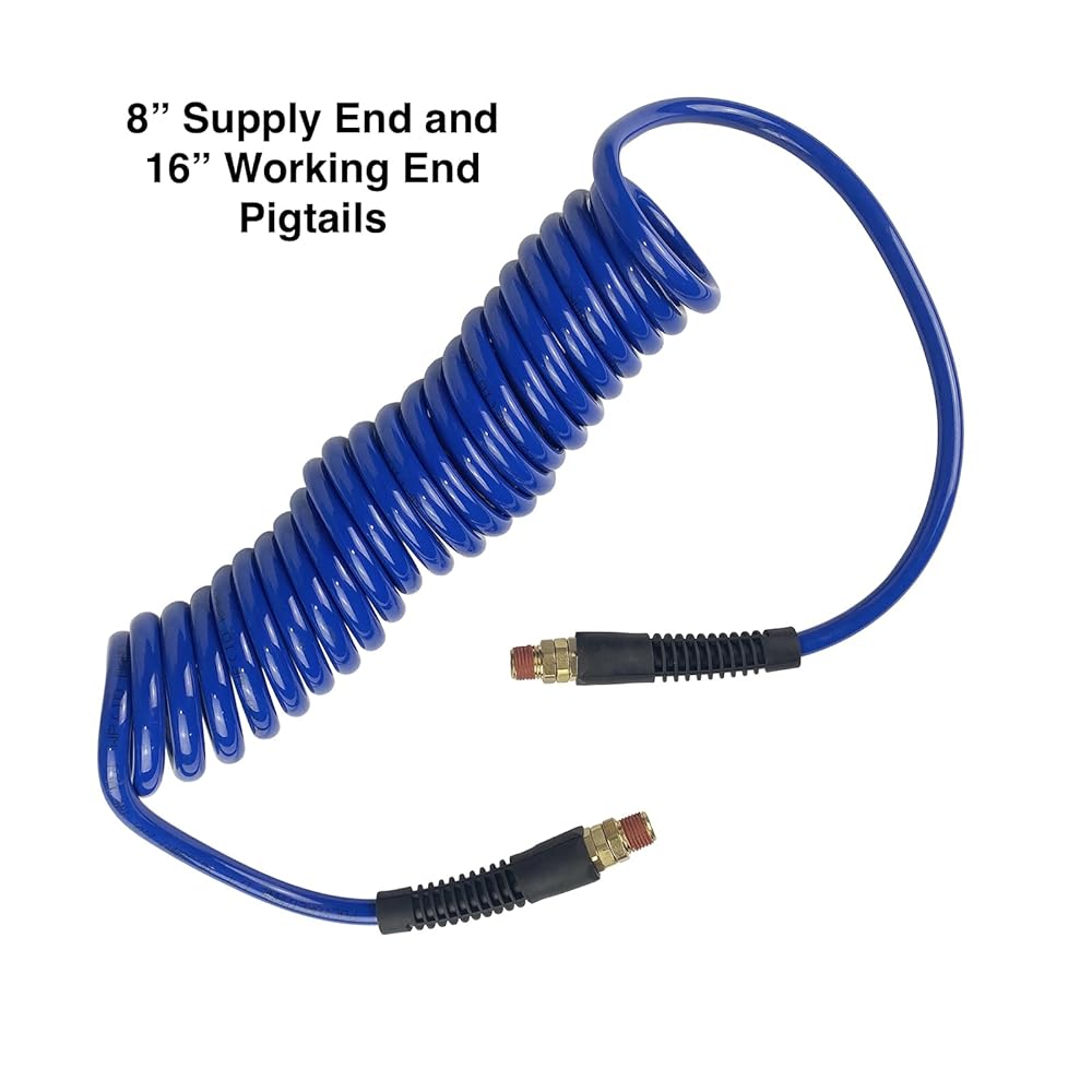 Primefit’s PU14015P is a Professional/Commercial Grade Polyurethane 1/4″ x 15 Foot Recoil Air Hose designed for use in Industrial, Automotive, Contractor and DIY applications. The high grade polyurethane material is soft, flexible, durable and extremely lightweight. The hose features a field repairable design using easy to replace 1/4″ swivel hose ends. The hose also features 16″ Working End and 8″ Supply End Pigtails.
