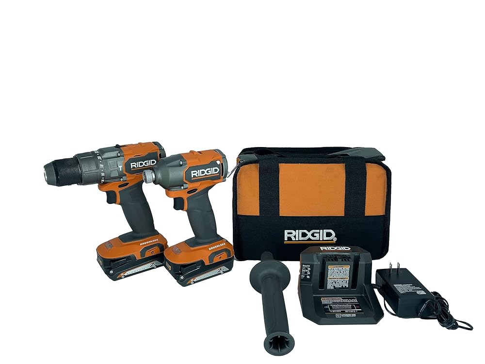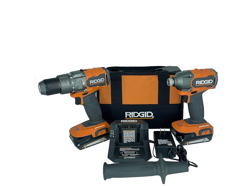 RIDGID 18V Brushless Drill/Driver and 3-Speed Impact Driver Kit with (2) 2.0 Ah Batteries and Charger(R92091SB3)