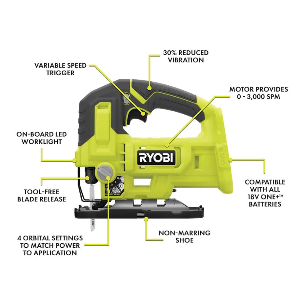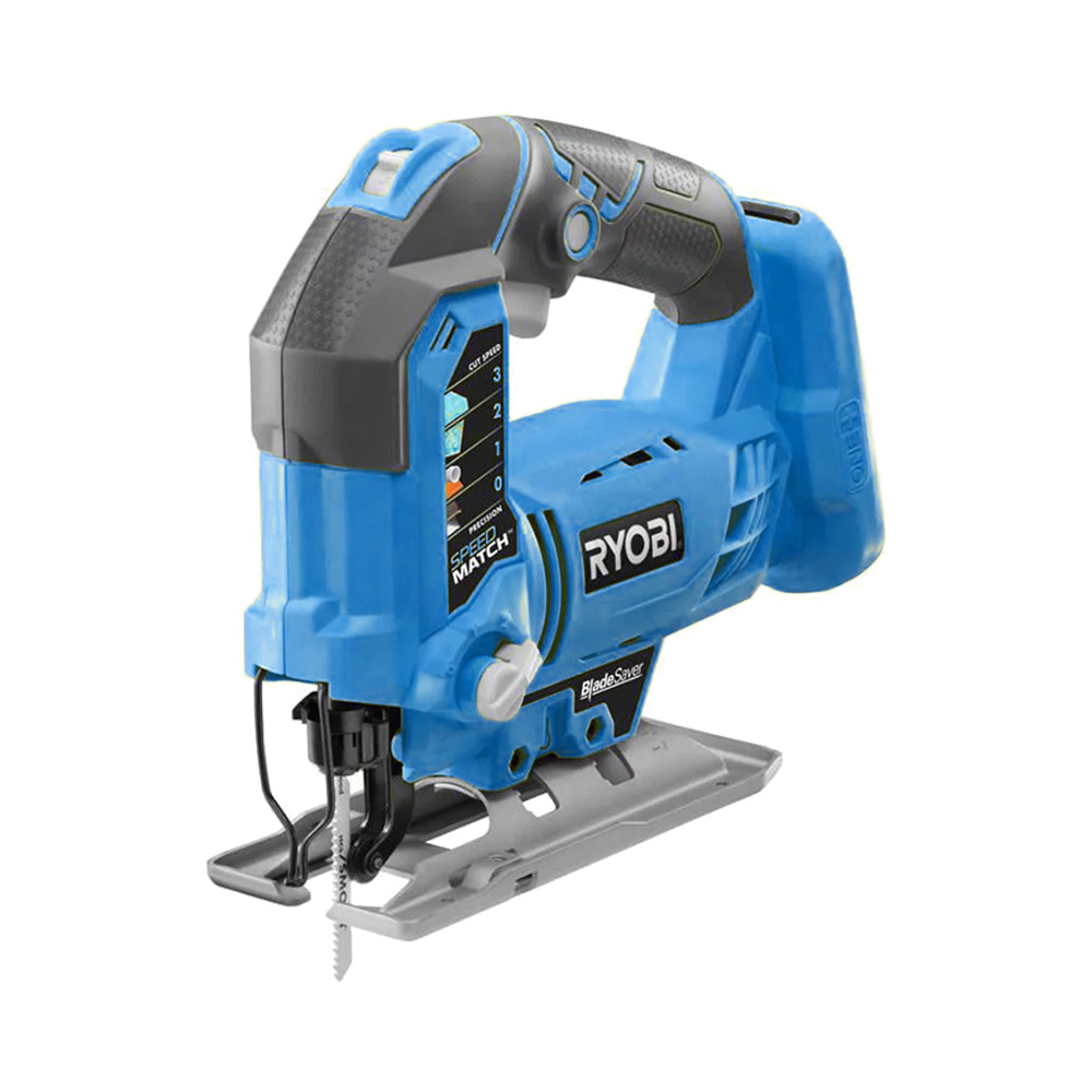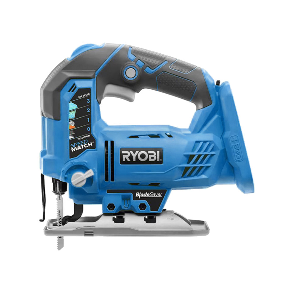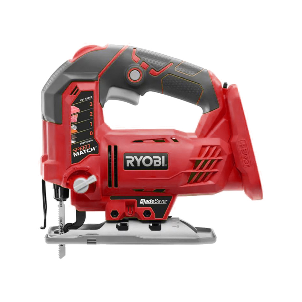 This is one of the toughest cordless tools in Ryobi’s 18V lineup. It has a powerful orbiting motor than can work up to 3,000 strokes per minute, adjustable with a switch at the top of the unit.
