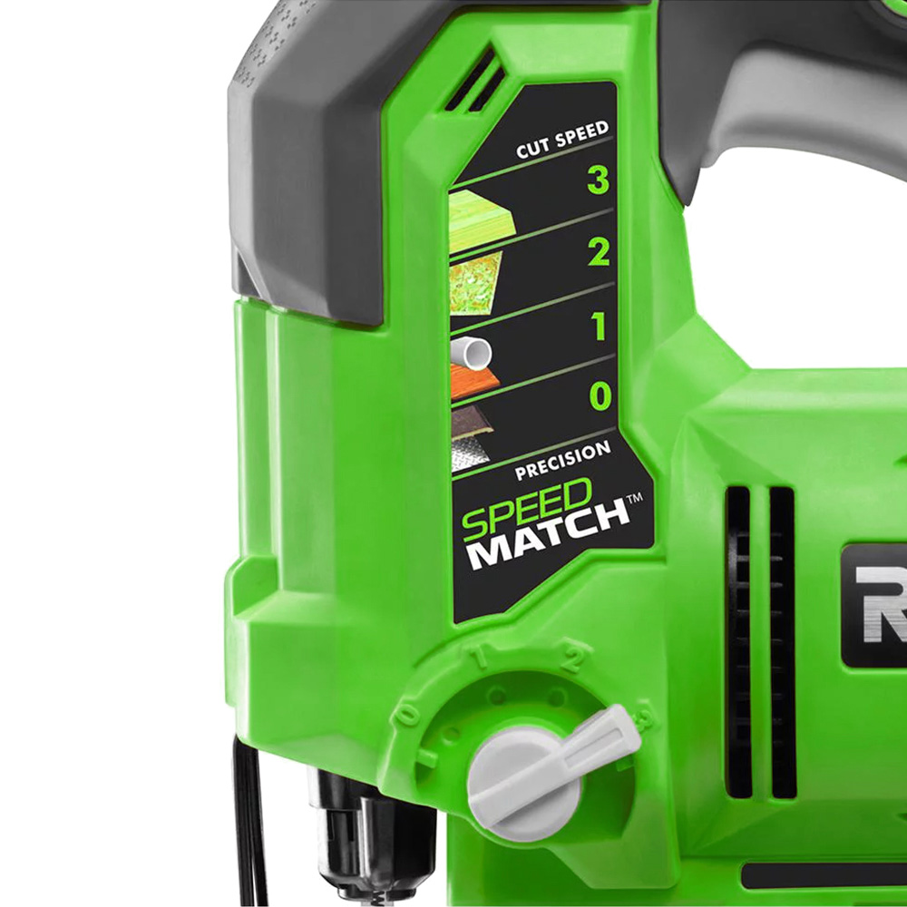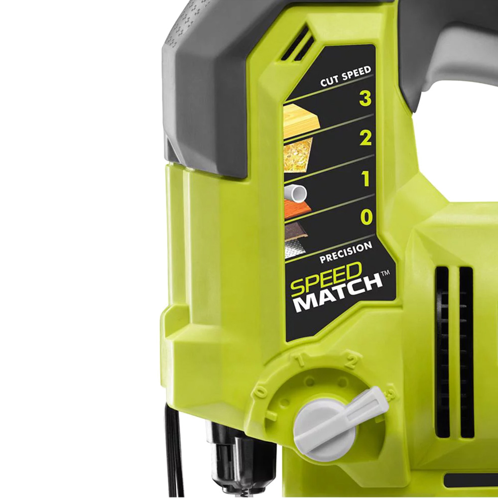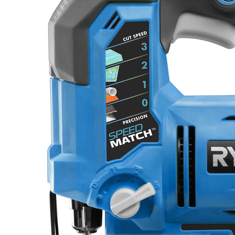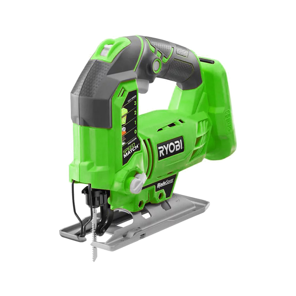 This is one of the toughest cordless tools in Ryobi’s 18V lineup. It has a powerful orbiting motor than can work up to 3,000 strokes per minute, adjustable with a switch at the top of the unit.