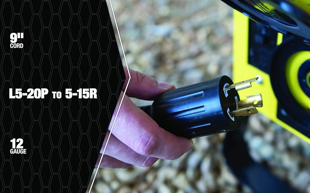 - EASY-TO-USE GENERATOR POWER CORD ADAPTER: simply twist the 20a receptacle to lock into the 15a receptacle; easily convert the plug effortlessly; bright yellow jacket of the generator cord adapter increases visibility to minimize tripping incidents
