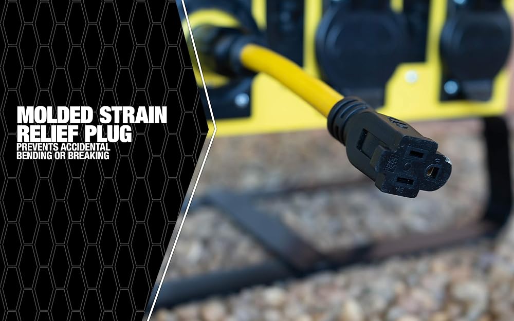 - HEAVY-DUTY GENERATOR CORD ADAPTER: a jacket keeps out the elements and protects the generator extension cord adapter for durability; the molded connectors are also crafted from impact-resistant material to withstand rugged industrial uses