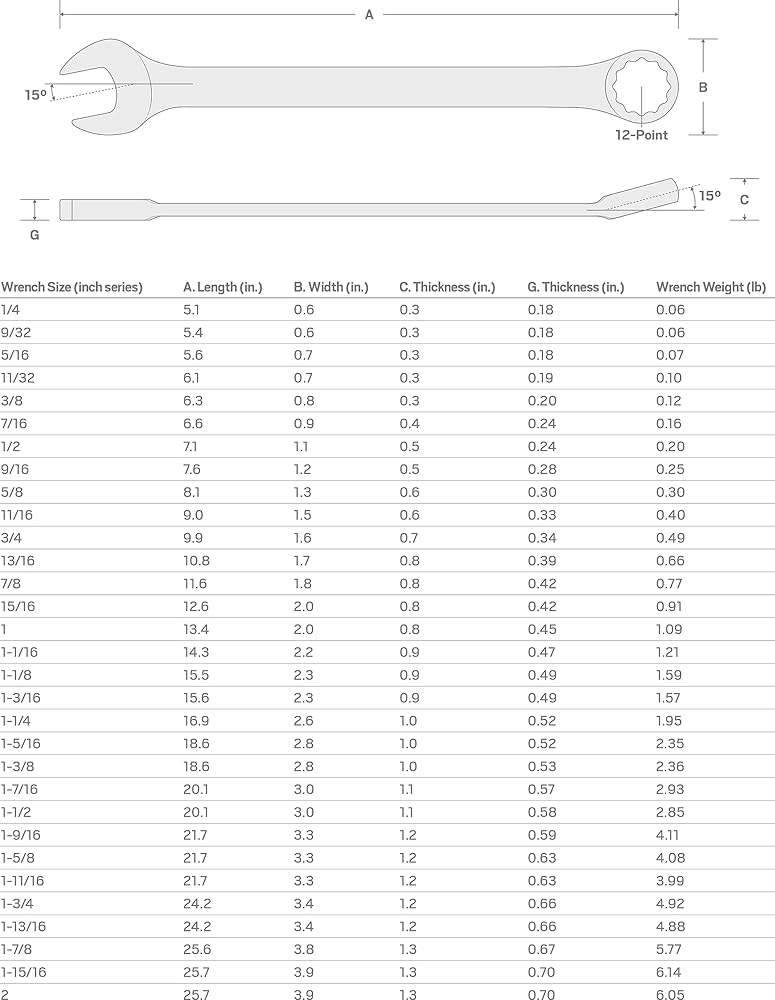 - Angled Open End – To reduce the working swing arc in tight spaces, the open end is angled 15 degrees so the wrench can be flipped over with each rotation to engage the fastener twice as often