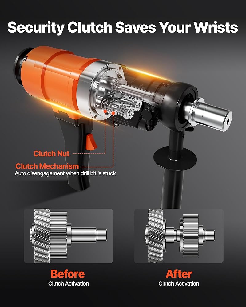 - Enhanced Security & Stability: The built-in clutch automatically stops the drill when it hits hard resistance to save you and the core drill machine. Plus, the water-seal-free design avoids common water seal failures and keeps your workflow steady